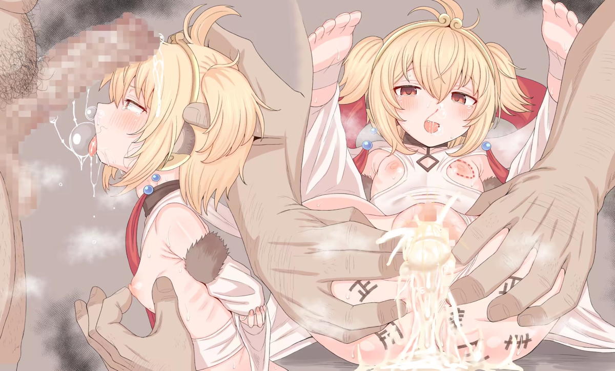 着衣の申鶴が正常位で犯されて潮吹きアクメしちゃう♡